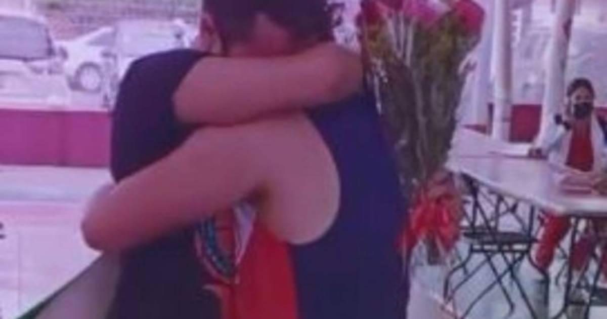 Tras unos instantes, la pareja se encontró en un fuerte abrazo en señal de que había sido aceptada la propuesta. Este encuentro duró varios segundos mientras de fondo podía escucharse la canción “ I love you, baby” de la cantante afroamericana Gloria Gaynor.