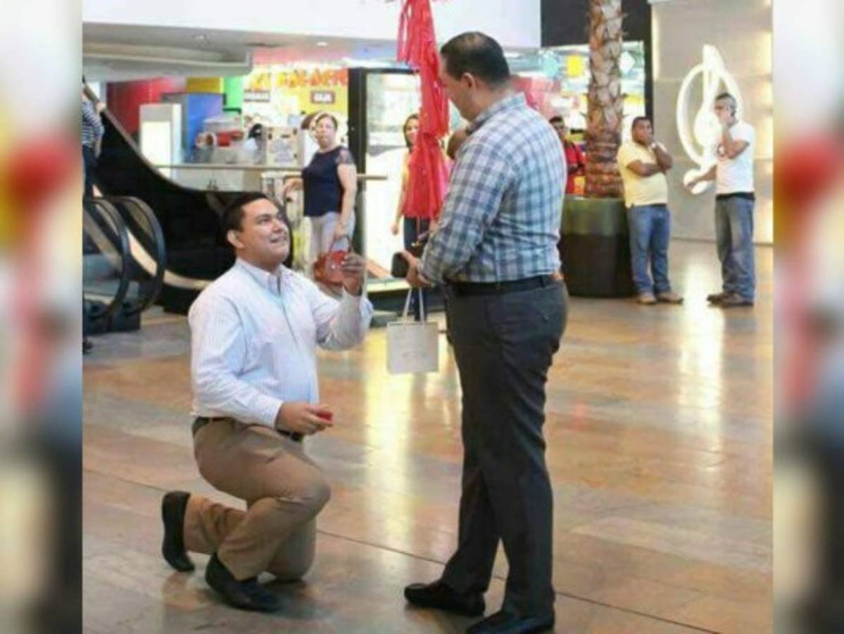Sin temor a las críticas, un hombre le ofreció matrimonió a su pareja, del mismo sexo, en un centro comercial de la ciudad de San Pedro Sula, norte de Honduras, que estaba abarrotado de decenas de personas sorprendidas.