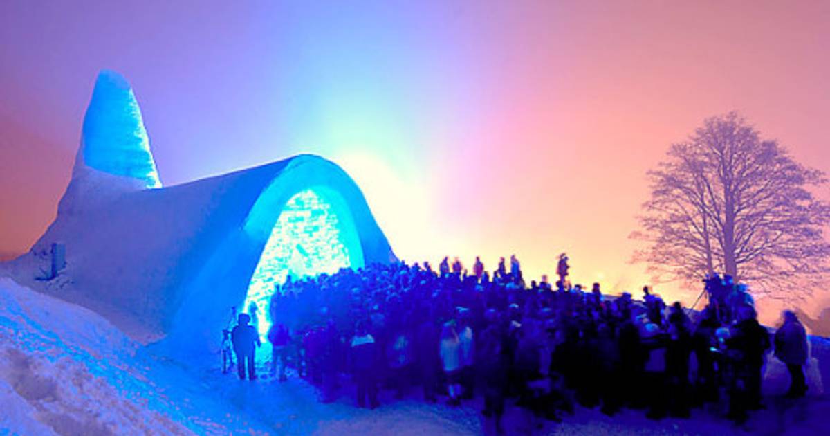 Una iglesia construida completamente con nieve y hielo abrió sus puertas el jueves en Bavaria, un siglo después de que los habitantes construyeron por primera vez una iglesia similar en un acto de protesta.