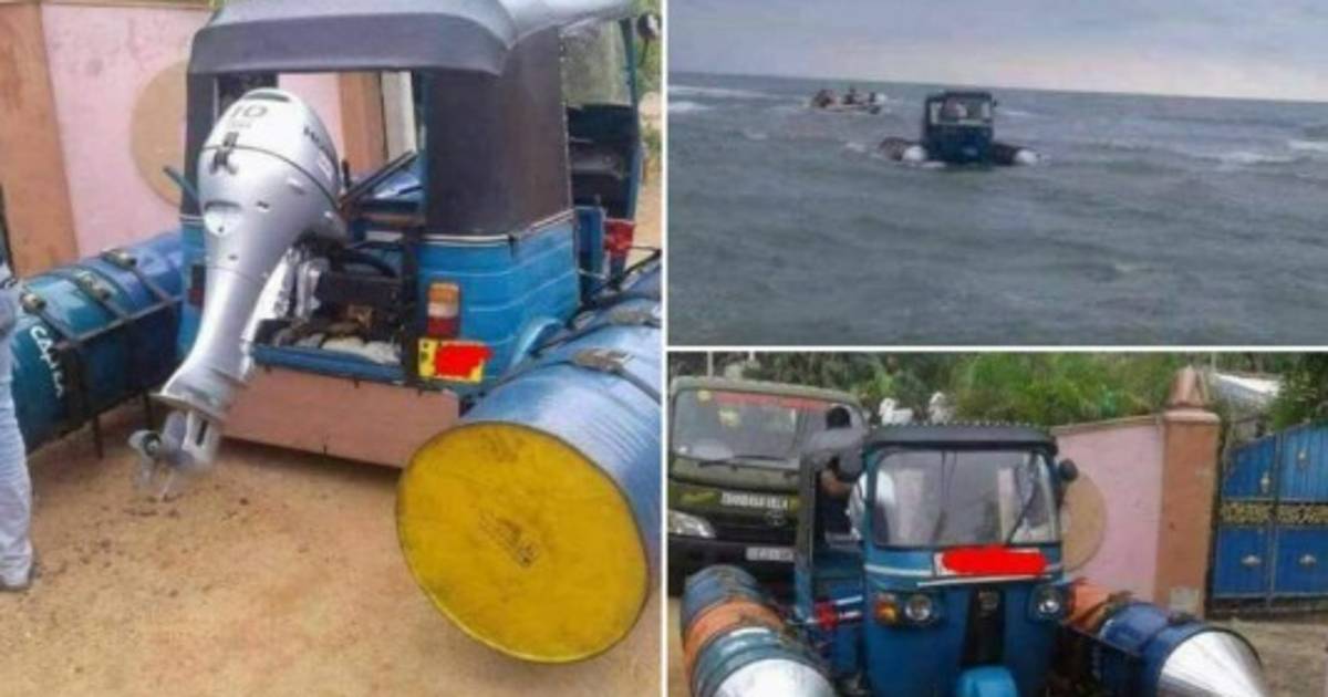 Por extraño que parezca, un grupo de jóvenes decidió acondicionar una mototaxi con una especie de turbos flotadores para que sirva como transporte marítimo en Tailandia.