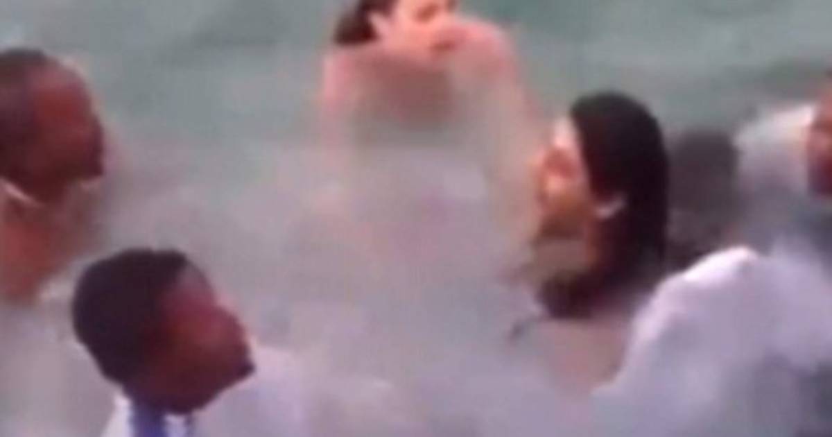 La feliz mujer saltó de un barco para unirse a su nuevo marido pero se enredó con los pliegues del traje bajo el agua.