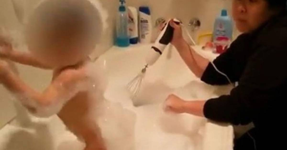 Según informa el Daily Mail, en el vídeo de la polémica la madre introduce una batidora en el agua para crear espuma en el baño mientras su hijo chapotea feliz.