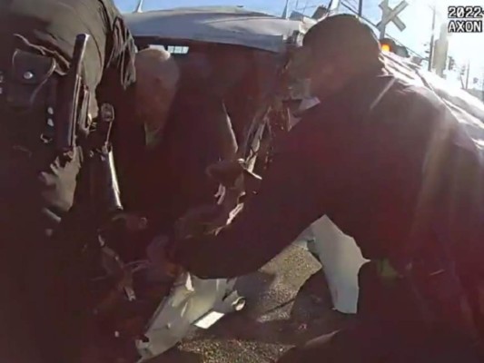 En las imágenes de la cámara corporal de los agentes, se puede ver al piloto ensangrentado atrapado en la cabina de la aeronave mientras policías de Los Ángeles trabajan desesperadamente para liberarlo.