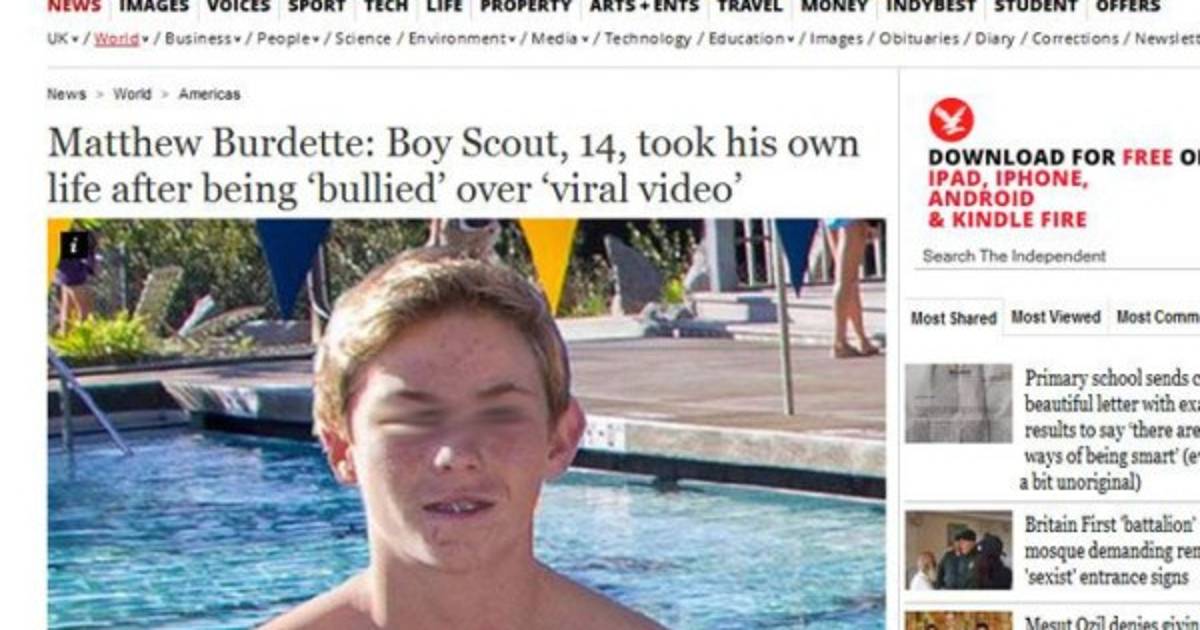 La maldad de algunos adolescentes puede provocar casos como el de Mattew Burdette, un joven estadounidense de tan solo 14 años que se suicidó tras sufrir el acoso de sus compañeros a través de las redes sociales.
