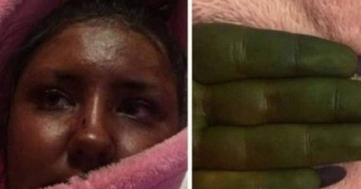 Danni Bruce, de 20 años, se aplicó una crema para oscurecer la piel, pero a los cinco minutos comprendió que había un problema en el proceso. Y aunque se lo quitó ya era tarde, estaba completamente verde.