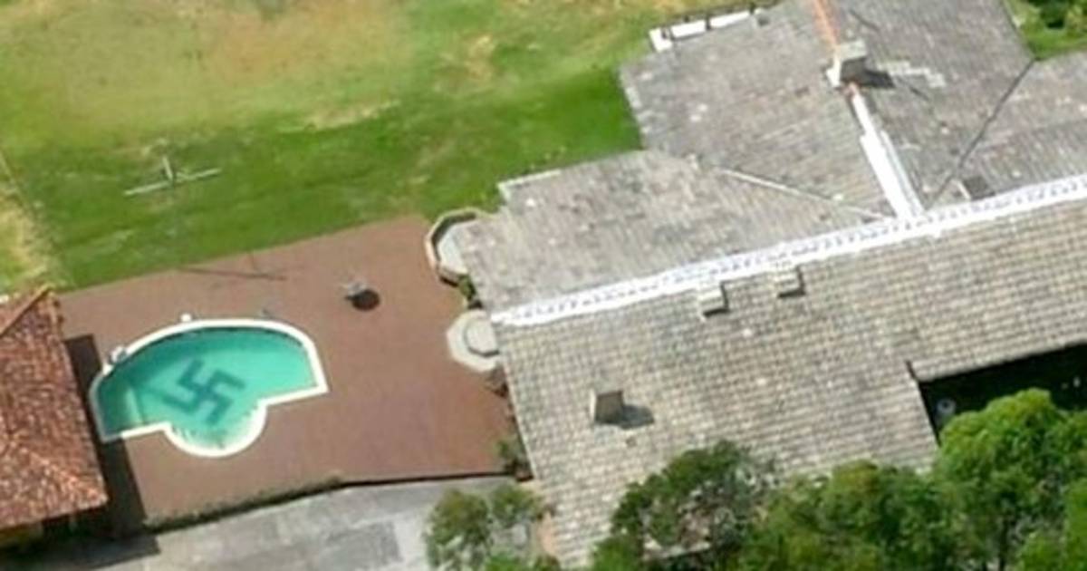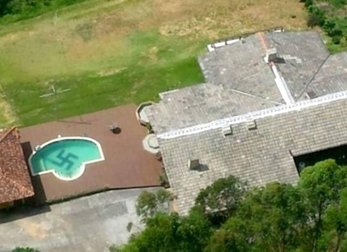 Agentes de la policía de Santa Catarina que sobrevolaban en un helicóptero el Valle de Itajaí, en Brasil, descubrieron una svástica en el fondo de una piscina.
