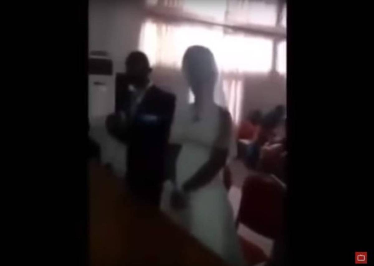 Y aunque no se puede observar qué ocurrió al final con la chica, sí se puede ver que el encargado de oficiar la ceremonia continuó con el discurso.