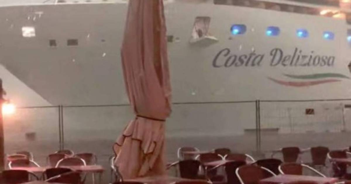 El crucero 'Costa Deliziosa', de casi 300 metros de largo y capaz de transportar a unas 3,000 personas, estaba por salir de la laguna de Venecia bajo una tormenta de lluvia y vientos fuertes, tirado por remolcadores, según un video publicado por el escritor y artista veneciano Roberto Ferrucci en su página web.