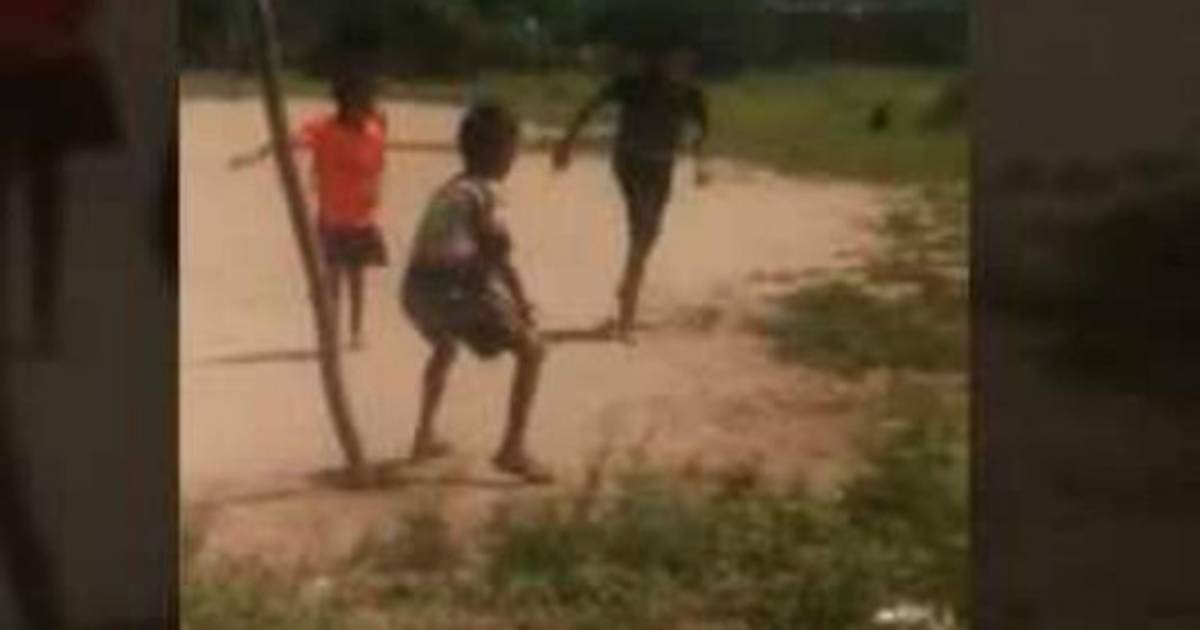 En la grabación los niños están jugando, hasta que repentinamente aparece una pequeña silueta aparece entre el pasto.