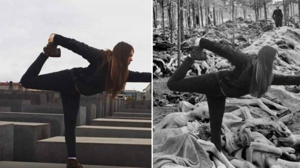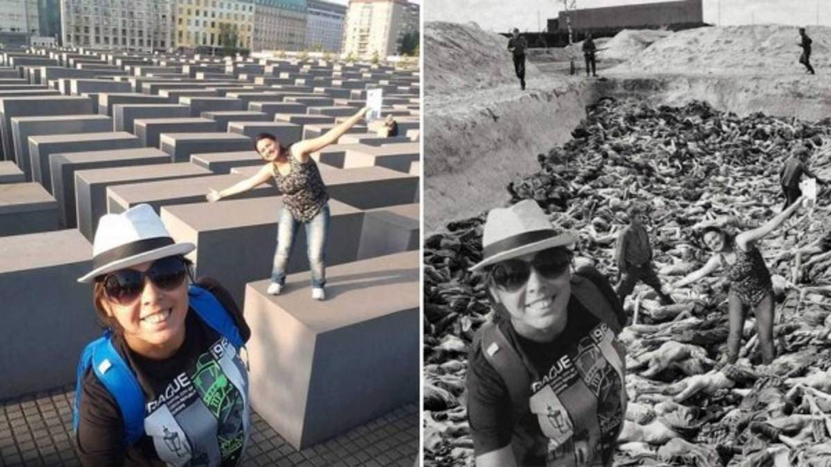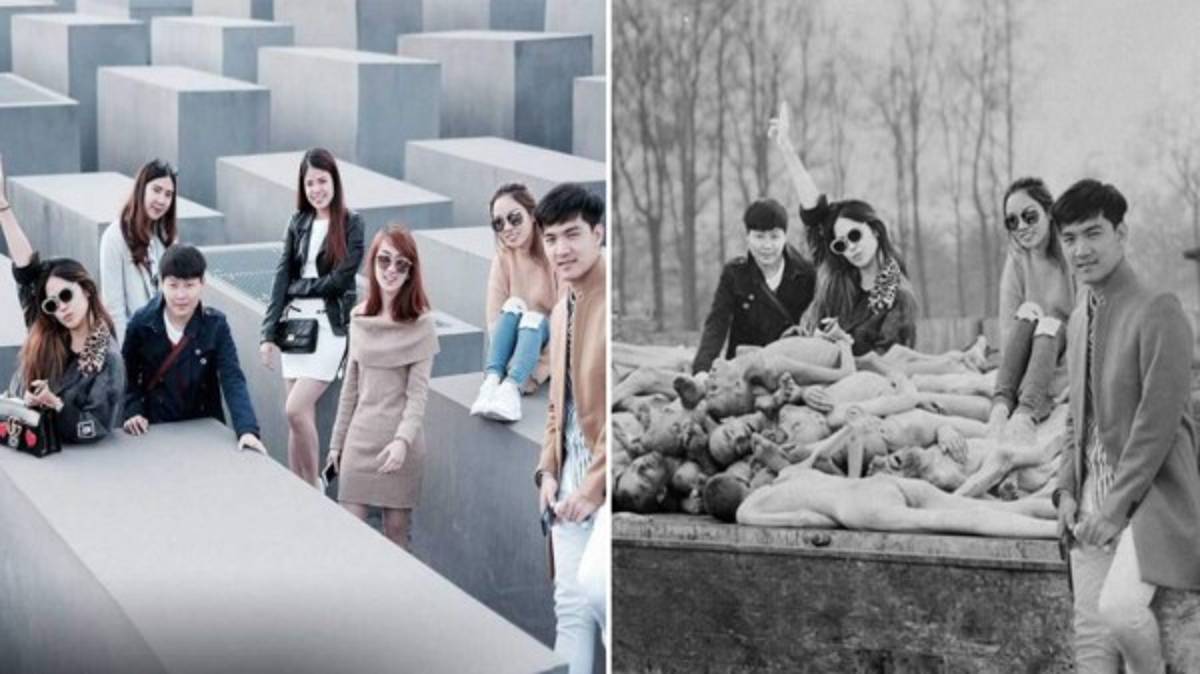 El humorista Shahak Shapira realizó diversos fotomontajes para homenajear a las víctimas del Holocausto y representar lo que realmente simbolizan los lugares donde miles de turistas toman fotografías diariamente con caras sonrientes o incluso con ridículas poses.