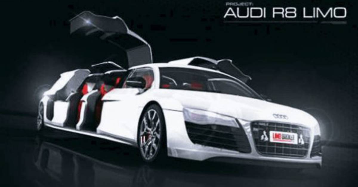 El Audi R8 V10 modificado, que tendrá una capacidad para ocho personas, según Limo Brokers, se convertirá en la limusina más rápida del mundo.