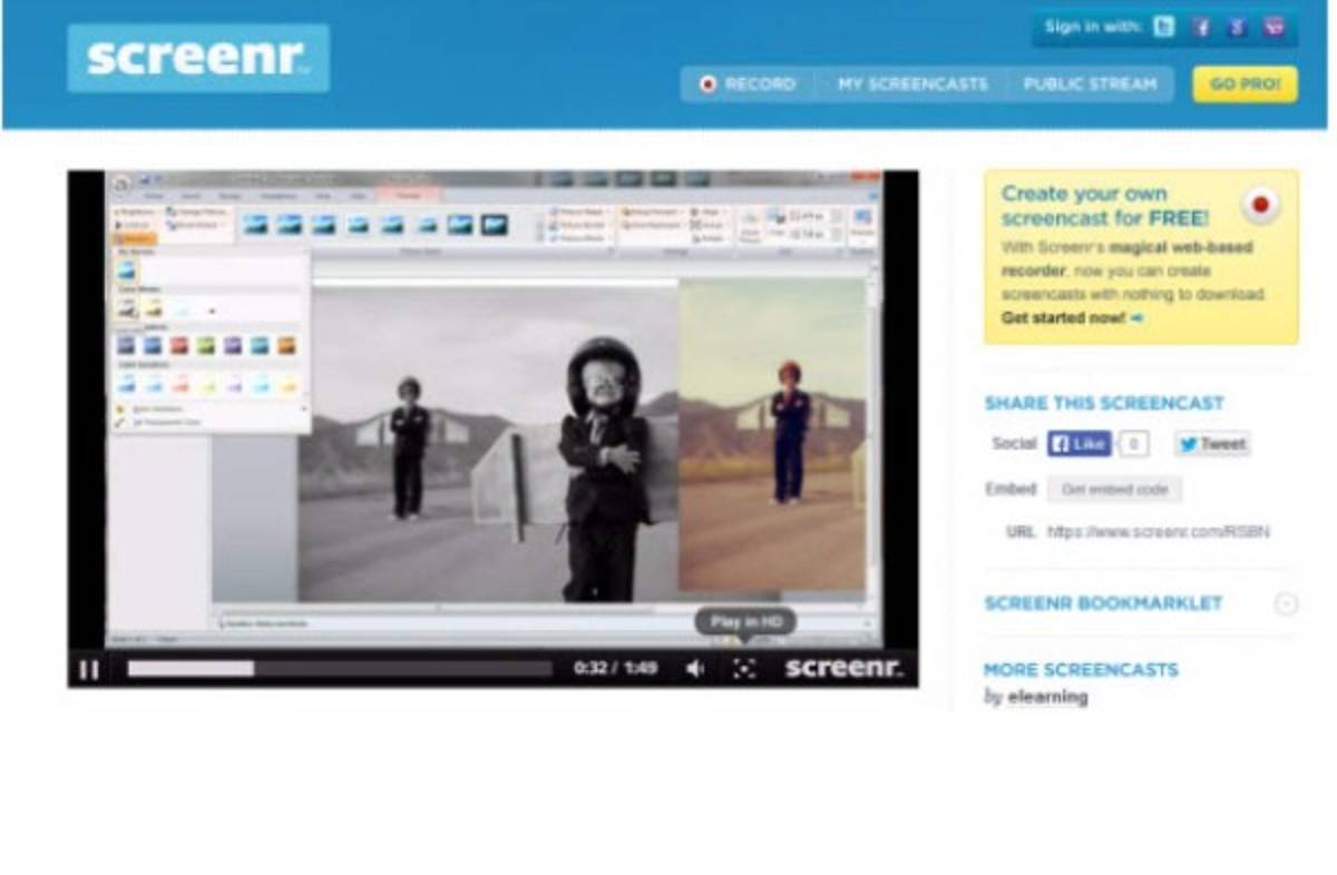 Screenr permite a los profesores grabar videos de la PC y agregar comentarios con el micrófono. Solamente es necesario tener internet para hacer que esta aplicación funcione.