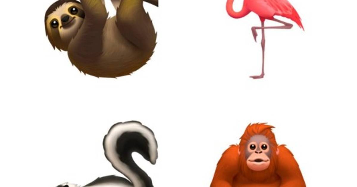 En cuanto a los animales se agregó al perezoso, el flamenco, el zorrillo y el orangután, y para las expresiones un nuevo emoji bostezante.
