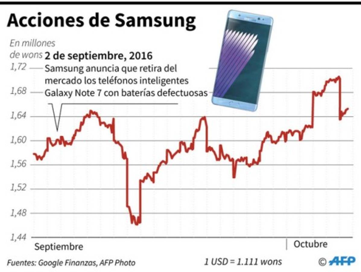 Ello provocó que la acción de Samsung llegara a perder este lunes hasta 4% en la bolsa de Seúl, aunque terminó la sesión con un retroceso de 1,52%.