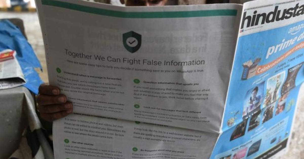 El servicio de mensajería móvil WhatsApp adquirió páginas enteras de publicidad en la prensa india para proponer consejos sencillos para localizar los rumores falsos, que provocaron una ola de linchamientos en el país.